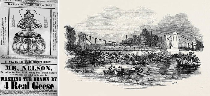 5. «Сегодня я узнал, что 1845 году в Англии 79 человек погибли в результате обрушения моста, которое произошло из-за того, что большая толпа собралась поглазеть, как четыре гуся тянут по реке лежащего в ванне клоуна».