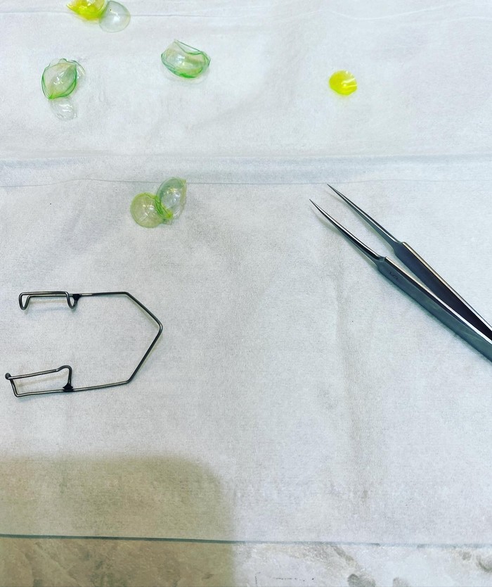 «Я тщательно разделила все контактные линзы и насчитала в общей сложности 23. Мне пришлось использовать очень тонкий хирургический инструмент, ювелирный пинцет, чтобы разделить их, — написала офтальмолог в своем Instagram*. — Они, по сути, склеились из-за того, что лежали под веком на протяжении месяца».