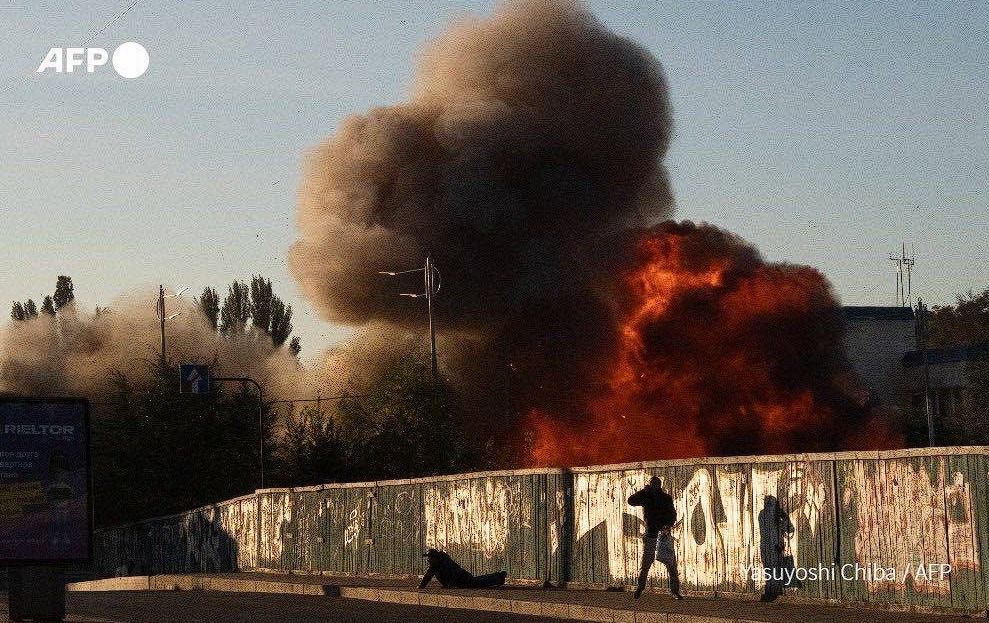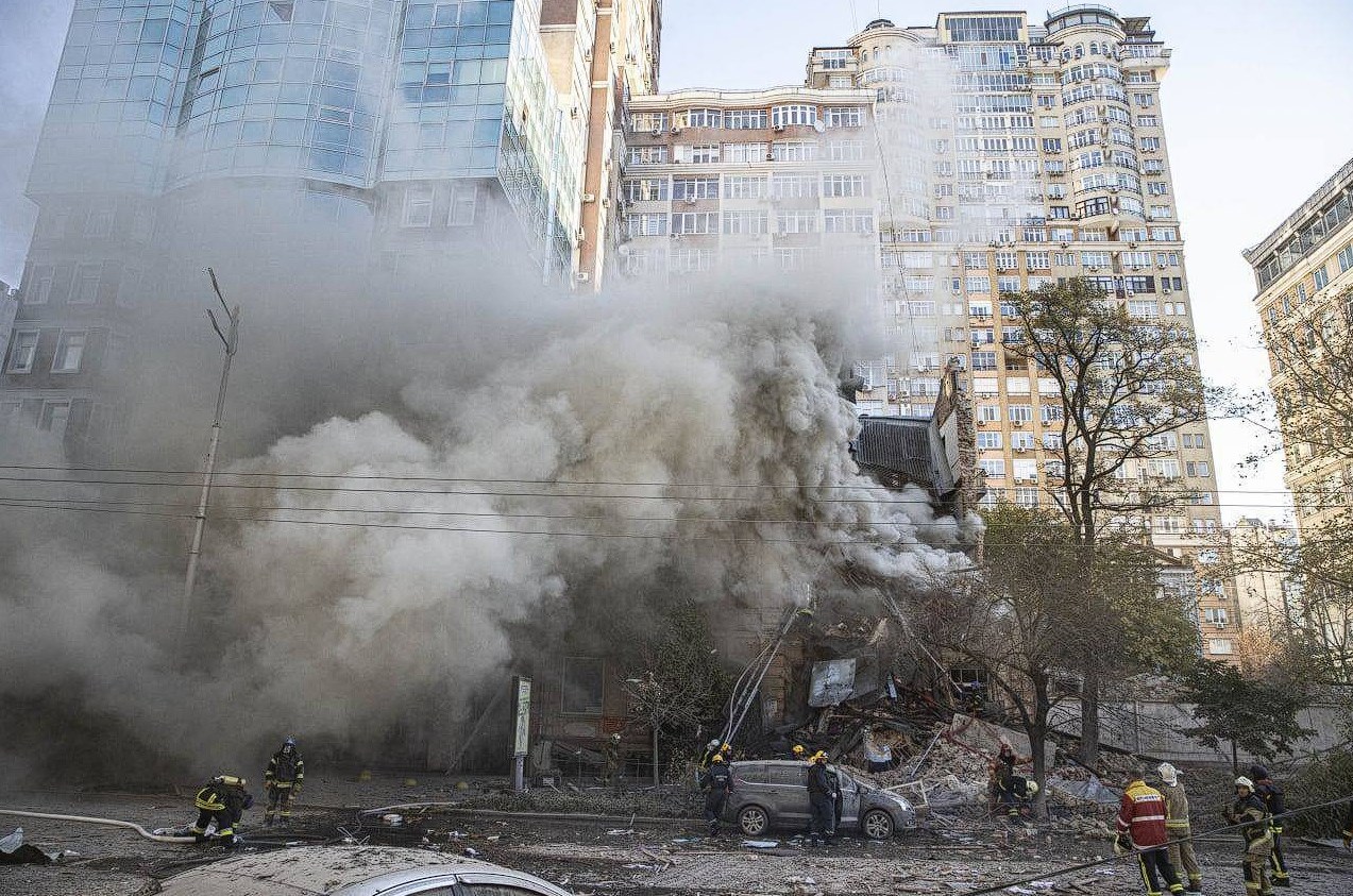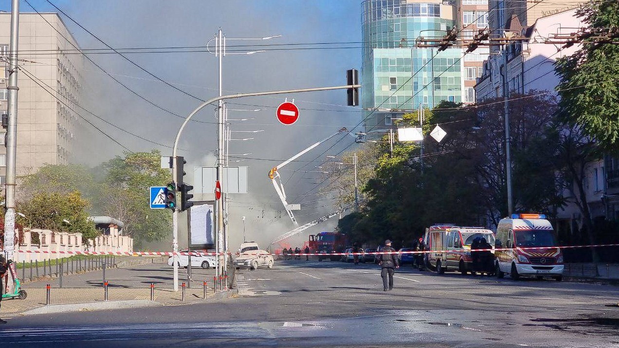 - В центре Киева – сильный пожар после атаки дрона-камикадзе.