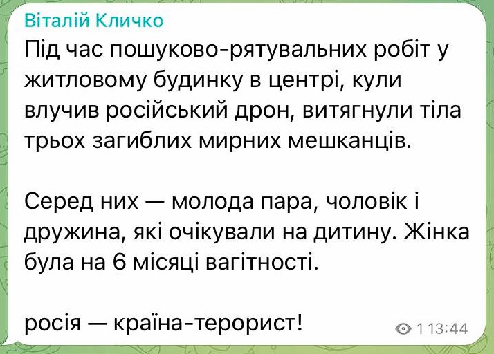 - Среди погибших сегодня в Киеве – молодая пара, которая ждала ребёнка. Женщина была на 6 месяце беременности.