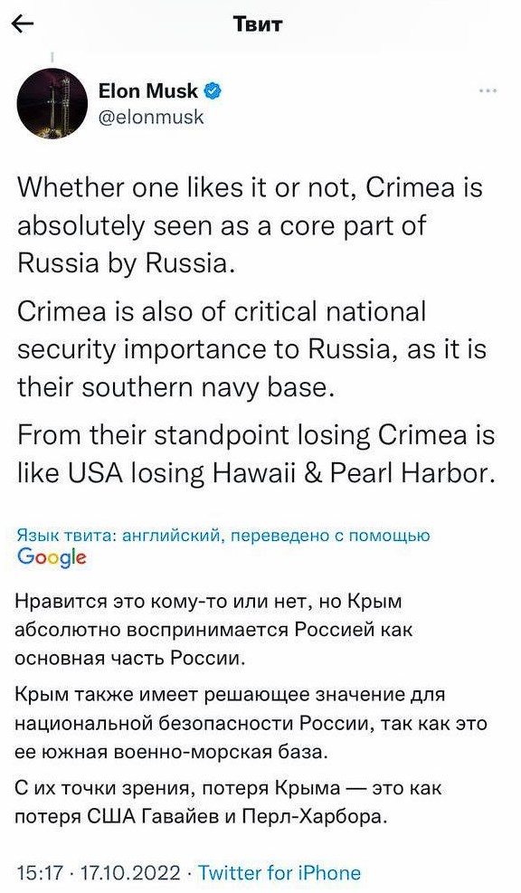 Пишет, что если Украина попробует отобрать Крым у рф, то русня, скорее всего, применит ядерное оружие.