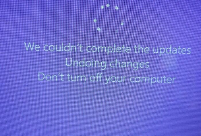 13. "Мы не смогли завершить обновление. Отменяем изменения. Не выключайте компьютер"