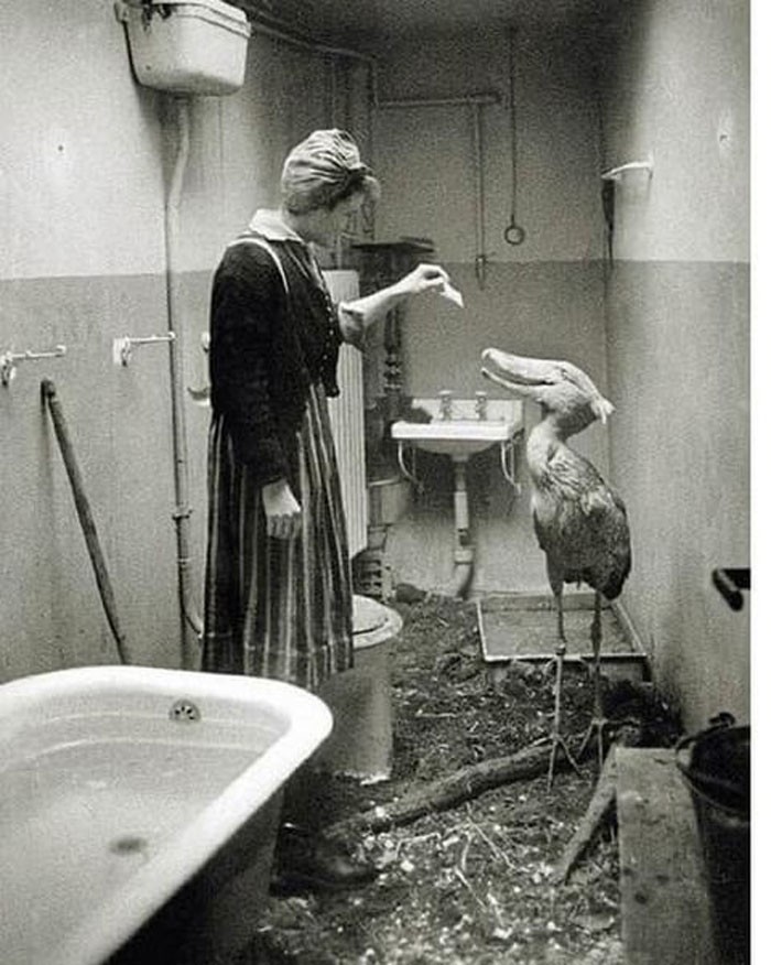 5. Когда советские войска подошли к Берлину в 1945 году, работники Берлинского зоопарка делали все возможное, чтобы позаботиться о животных. Этот китоглав временно поселился в доме одной из сотрудниц