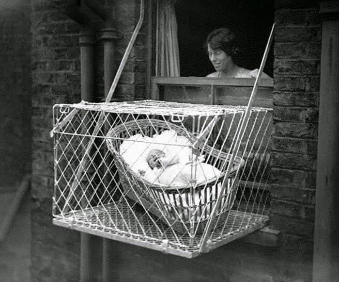 35. В 1930-х годах для того, чтобы дети в многоквартирных домах получали достаточно свежего воздуха и солнечного света, использовали "детские клетки"