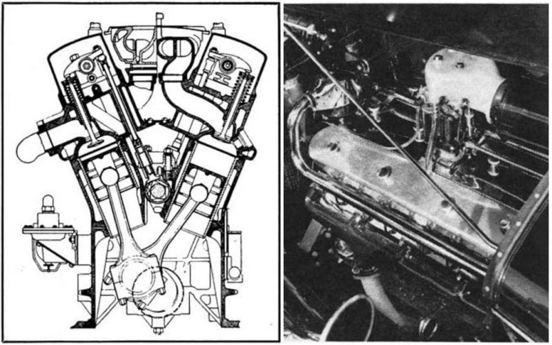 Как нетрудно догадаться из названия, центральной особенностью нового автомобиля стал 16-цилиндровый двигатель. Его разработкой занимались талантливые инженеры Говард Мармон и Джордж Ульямс. Всего за четыре года они создали уникальный, полностью алюминиевый двигатель. Его клапанный механизм имел верхнее расположение и привод от нижнего распредвала через толкатели. При рабочем объеме 8049 см3 двигатель выдавал внушительные для своего времени — 200 л.с. При этом он получился очень легким (всего 400 кг), тихим и тяговитым. В пару к мотору прилагалась синхронизированная 3-ступенчатая механическая коробка передач.