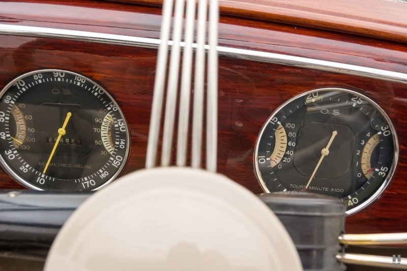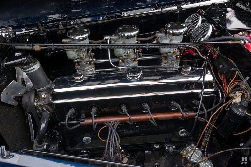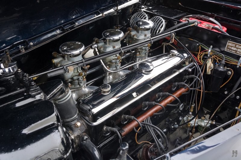 Пробег именно этого экземпляра дилер не уточняет, но заявляет, что кабриолет находится в прекрасном состоянии благодаря относительно недавней реставрации кузова и салона. Delahaye 135M укомплектован более мощной версией штатного мотора, известной в те времена под обозначением MC — она развивает 130 л.с. и работает с четырёхступенчатой коробкой.