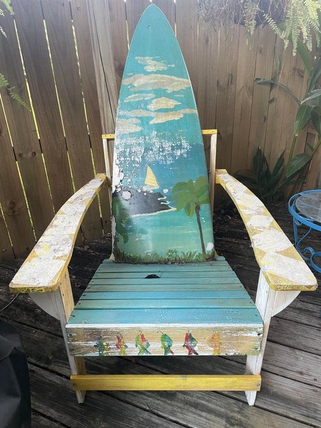 А вот что мои бабушка с дедушкой сделали из старой доски для сёрфинга