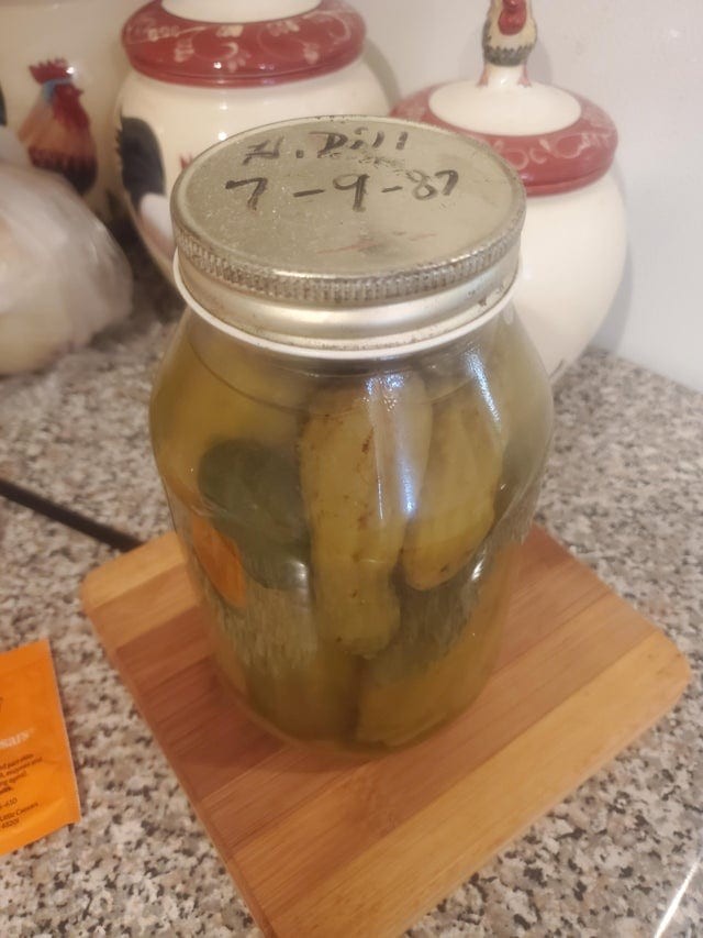 Помогали маме собирать вещи и нашли неоткрытую банку солёных огурцов 1987 года выпуска