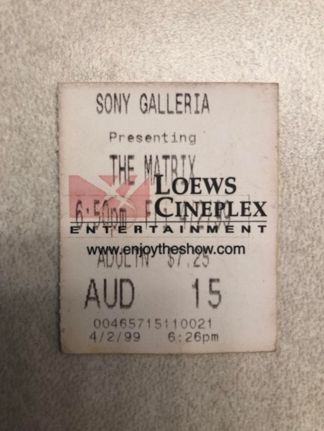 Корешок билета на «Матрицу» 1999 года, найденный среди вещей