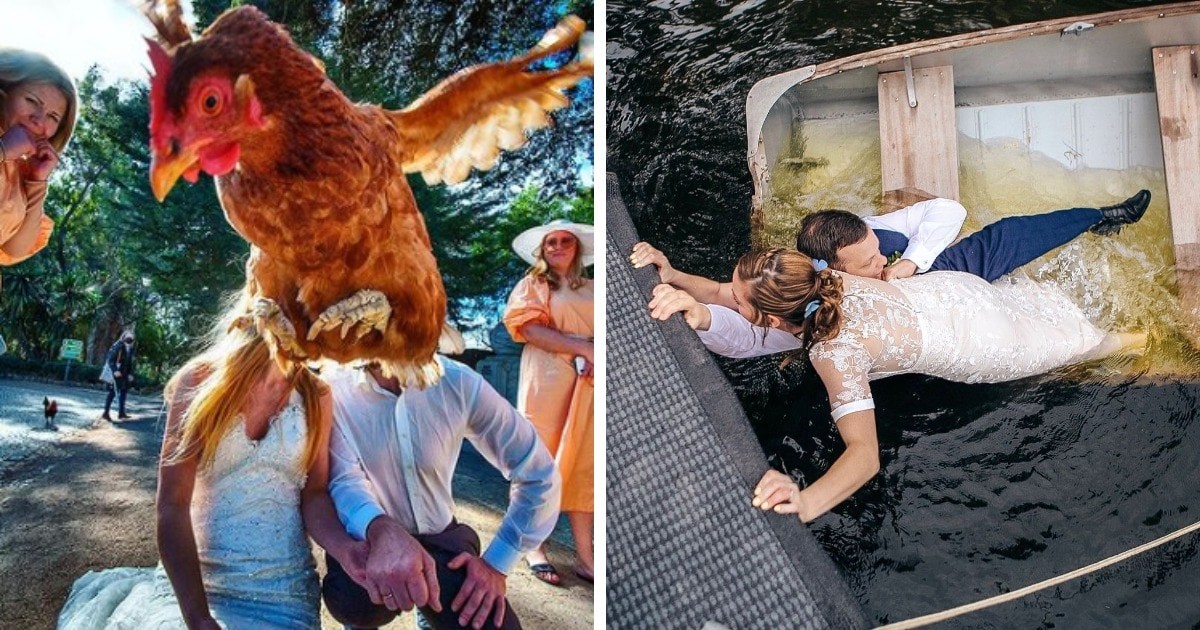 Свадебные фото, на которых были пойманы забавные моменты (18 фото)