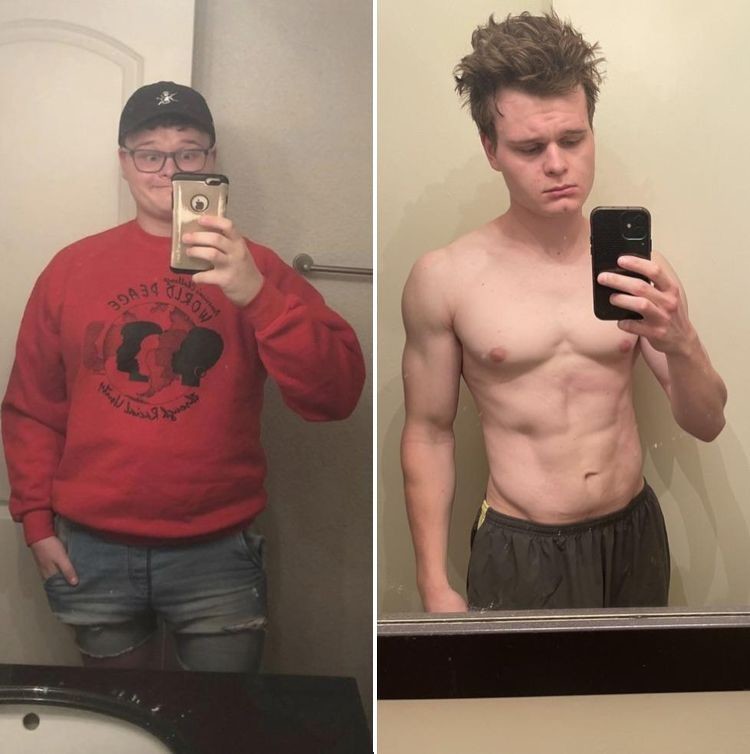 «Первая фотография была сделана 21 мая 2019 года, я стал немного больше из-за самоизоляции и, наконец, начал заниматься в зале в августе 2020 года