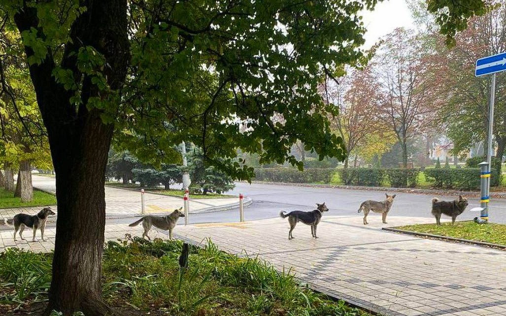 - Даже у украинских бездомных собак воспитание лучше, чем у кацапов: на фото Краматорск. И очередь из четвероногих, которые ждут еду возле волонтерского пункта кормления беспризорных животных.