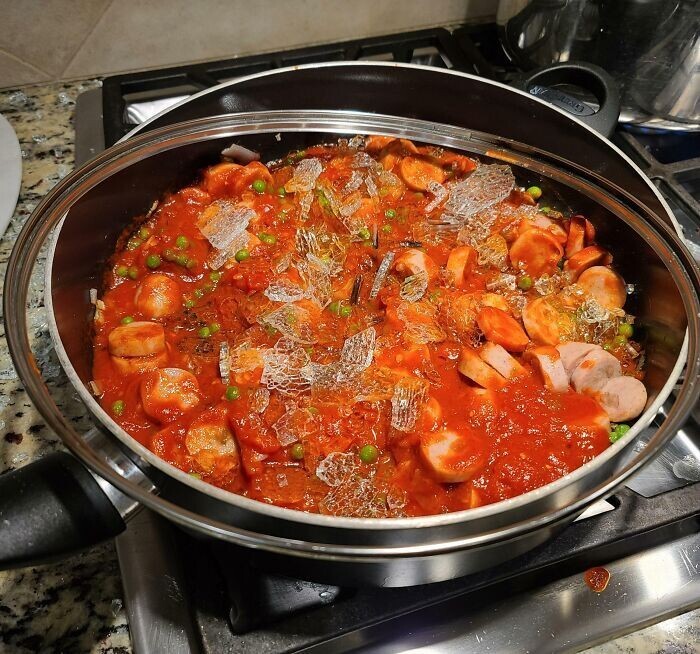 "Стеклянная крышка кастрюли взорвалась и осыпалась прямо в пасту. Прощай, ужин!"