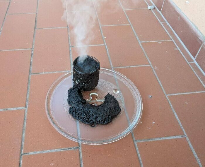 "Вот чтоб бывает, если забыть в микроволновке на неделю спагетти с грибным соусом. Пишите рецепт"