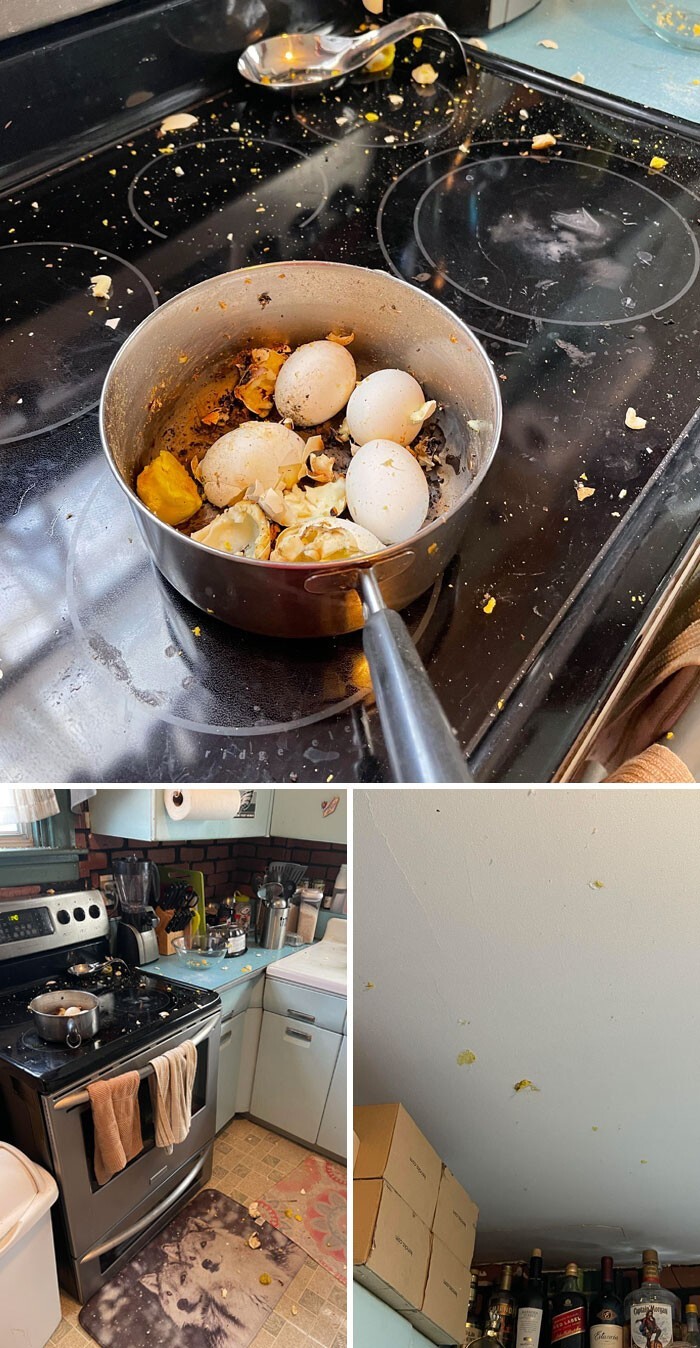 "Вот что бывает, когда забываешь про яйца, кипящие на плите"