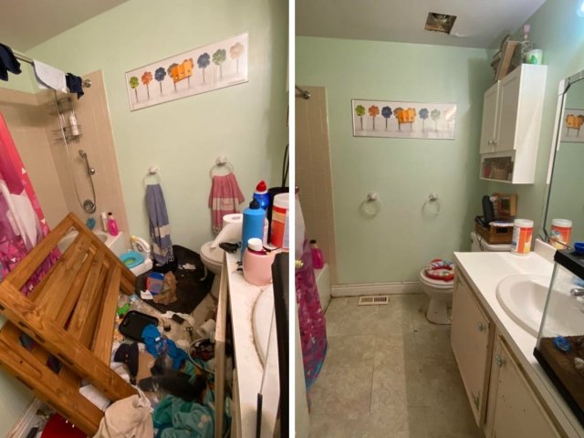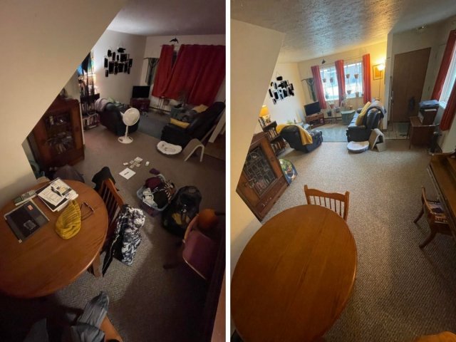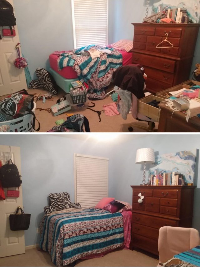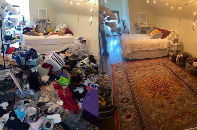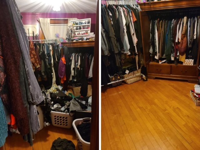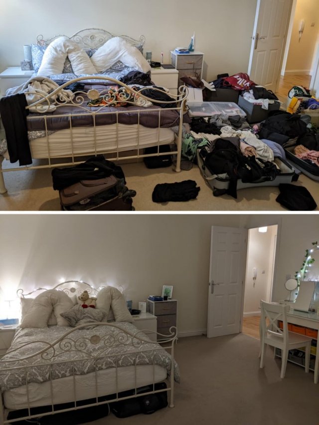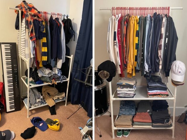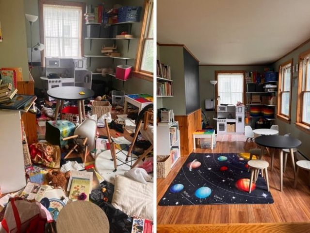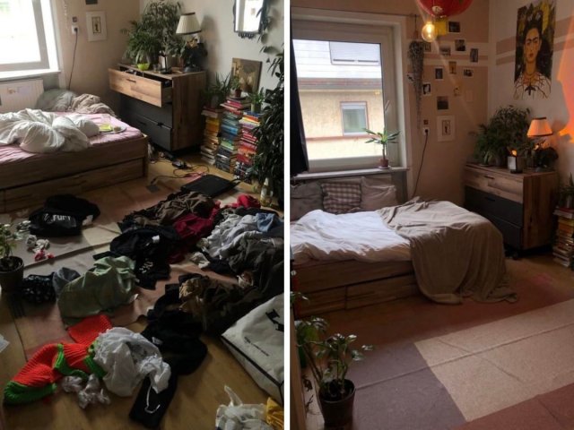 Иногда мы даже не замечаем, как начинаем устраивать вокруг себя хаос, оставляя огромное количество вещей не на своих местах. Конечно, такая проблема знакома далеко не всем. Но, как я полагаю, очень даже многим. Например - мне. Наблюдая за тем, как хлам копится, становится все больше и больше лень его убирать. Однако нужно брать себя в руки и разгребать "залежи". Авторы этих снимков не поленились и показали, как обычная уборка меняет окружающее пространство. Если вам с подобным сталкиваться не приходится - поздравляю. Если же иногда приходится - не ленитесь!