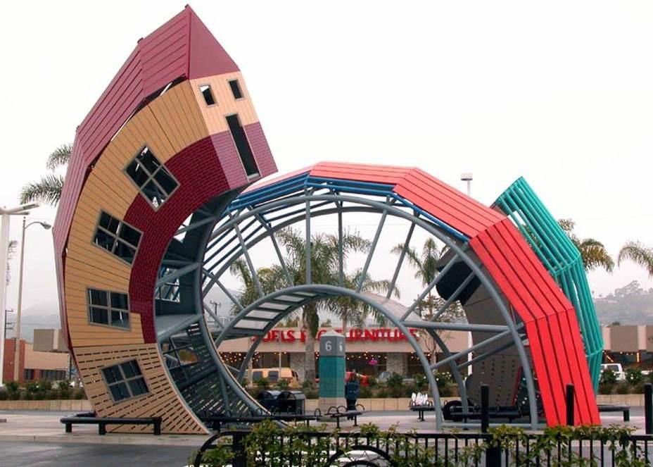 А в Испании можно найти нечто, похожее на бетонную изогнутую ленту. По крайней мере, именно это напоминает остановка в Касар-де-Касересе, созданная архитектором Хусто Гарсией. Внимание она уж точно способна привлечь, раз довольно быстро стала местной достопримечательностью.