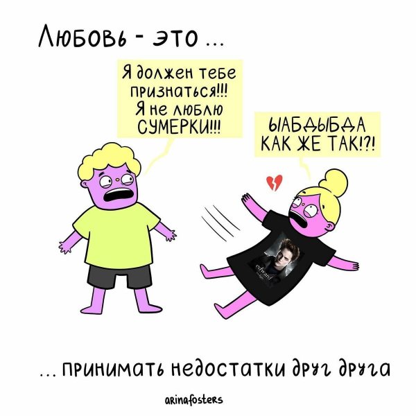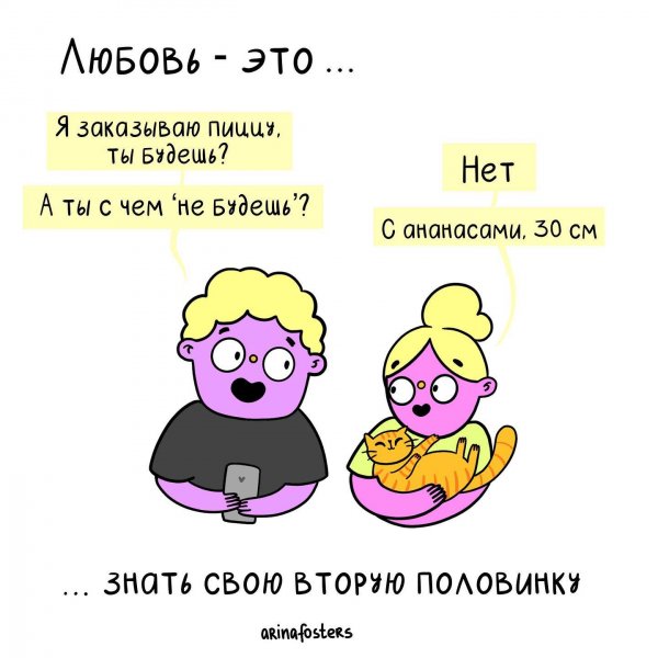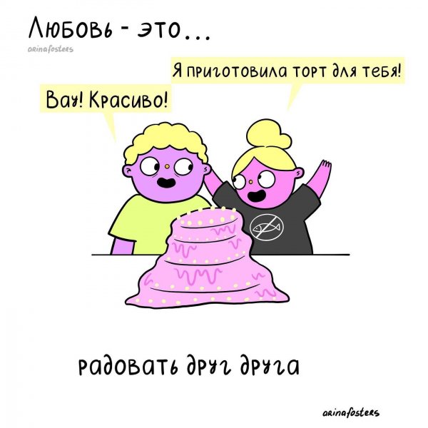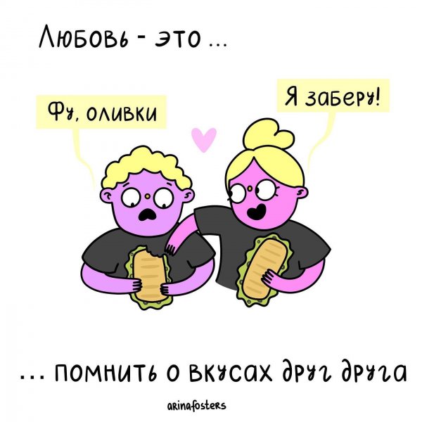 Что такое настоящая любовь? Об этом веками задумывались философы, драматурги и поэты. Кто-то считает, что любовь - это свод строжайших правил; другие скажут, что это страдания и самопожертвования; а есть и те, для которых необходимы рыцарские подвиги и битвы с драконами. Также найдутся скептики, для которых любовь является случайной комбинацией химических реакций в организме. А может быть... все намного проще? Художница из Уфы по имени Арина уверена, что в наше время любовь состоит из маленьких бытовых деталей, которые не нуждаются трагедиях и страстях.