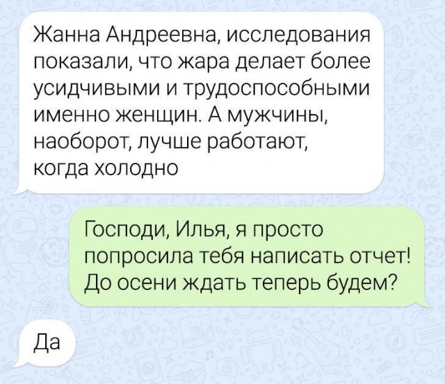 Ежедневно люди пользуются для общения различными мессенджерами и социальными сетями, поскольку это действительно удобно. Однако не все и не всегда замечают, какие необычные, странные и забавные переписки у них получаются. Если же замечают, с радостью делятся ими в социальных сетях, поднимая настроение окружающим.