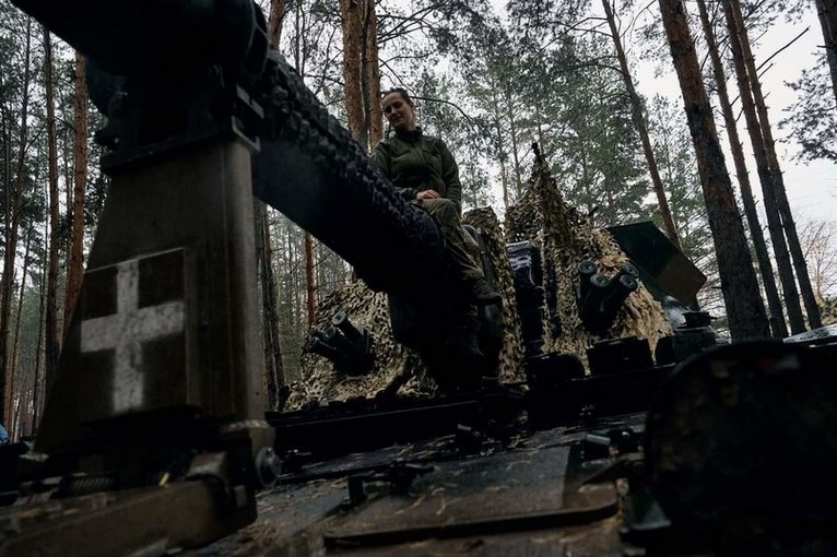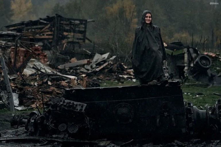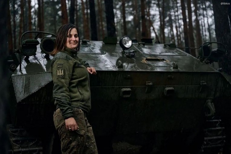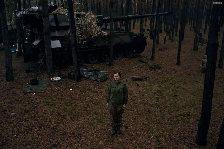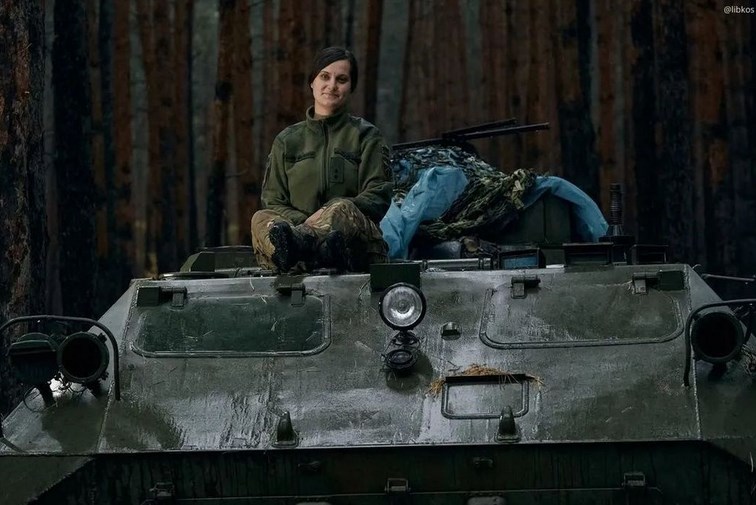 Первая женщина, которая возглавила артиллерийское подразделение ВСУ, стоит на остатках техники оккупанта, уничтоженной силами ее подразделения.