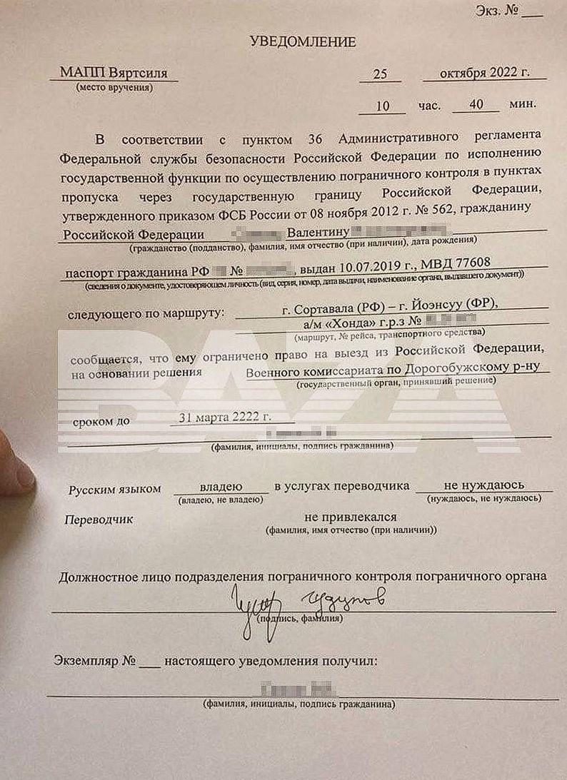 - Живите 200 лет, но из рашки ни ногой! Уведомление с запретом на выезд из рф до 2222 года смоленский военкомат вручил парню при его попытке выехать за границу.
