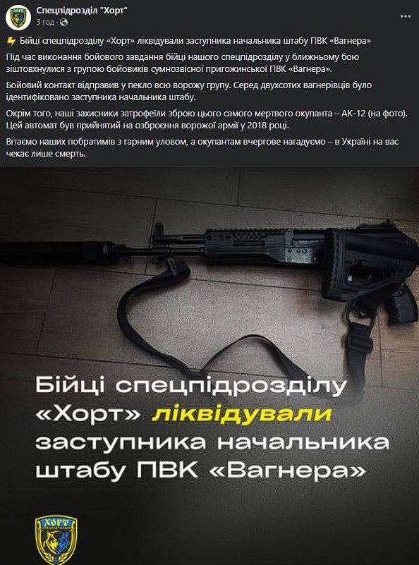 - Бойцы спецподразделения "Хорт" ликвидировали заместителя начальника штаба ЧВК "Вагнера"