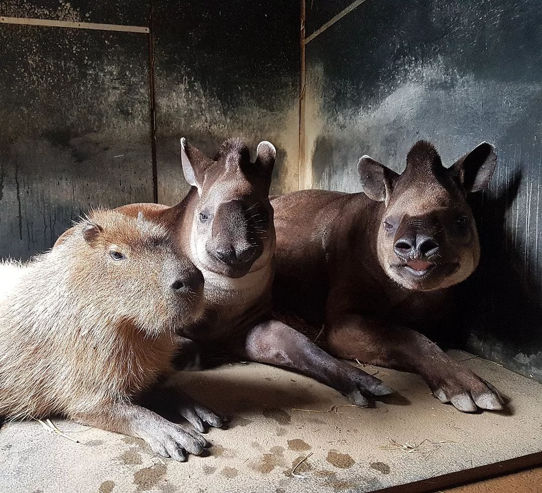 Детёныш капибары знакомится с очаровательным котёнком