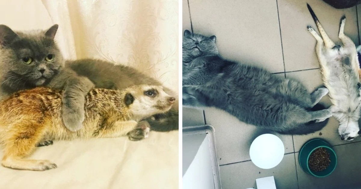 Необычная дружба — сурикат Сури и кот Найс