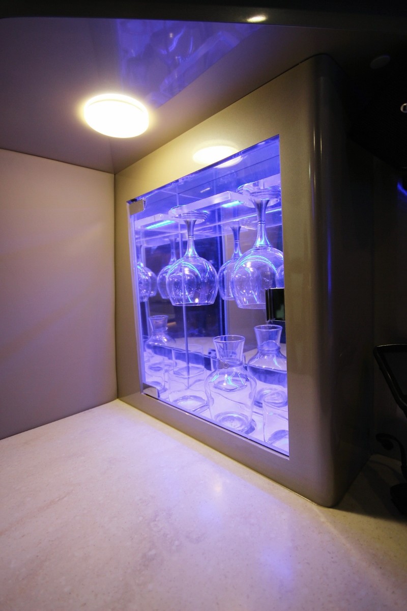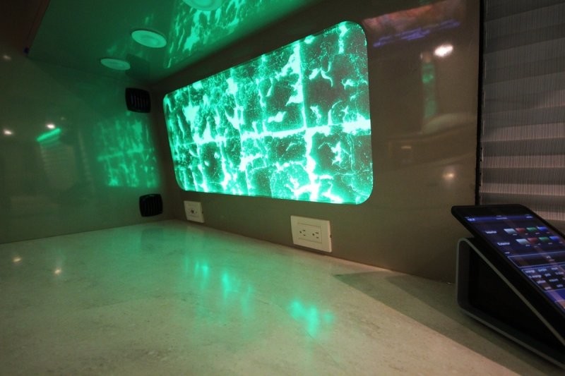 Управление большинством функций (освещением, музыкой, телевизором и т.д) здесь осуществляется с iPad. А еще порадовать жильцов призвано наличие на борту ванной комнаты со стиральной машиной и сушилкой, а также винного шкафа.