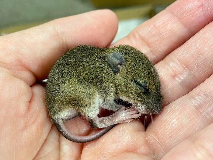 Россиянка под ником Virilvi живёт в Германии. Она заметила этого мышонка возле дороги. Малыш неподвижно лежал на асфальте - и девушка посчитала, что его уже не спасти, но решила отнести его подальше.. Вдруг она увидела, что мышонок пошевелил лапкой. Оказалось, он был еще жив. К тому моменту девушка не могла оставить его одного, и понесла с собой домой.