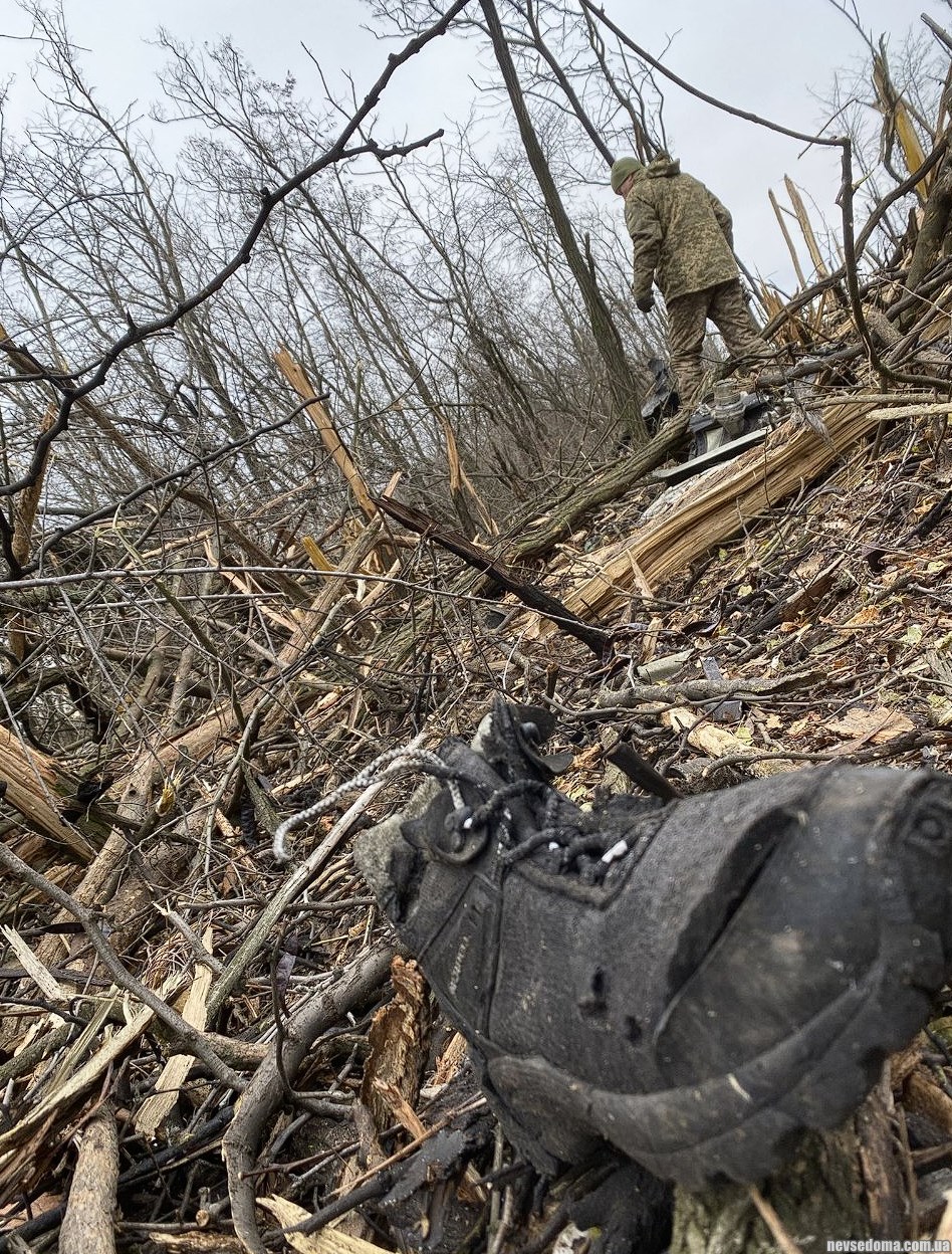 Шлем пилота, части самолета, а так же другие интересные вещи на месте сбитого Су-24М в районе Бахмута