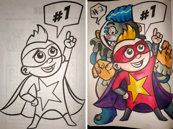 В каждом взрослом живет ребенок, которому хочется пошалить и где-нибудь напакостить. А если у него еще и богатая фантазия, то всё - его уже не остановить. От таких надо прятать даже детские раскраски. Если они попадут к ним в руки, то детских книжечках могут появиться совсем недетские рисунки.