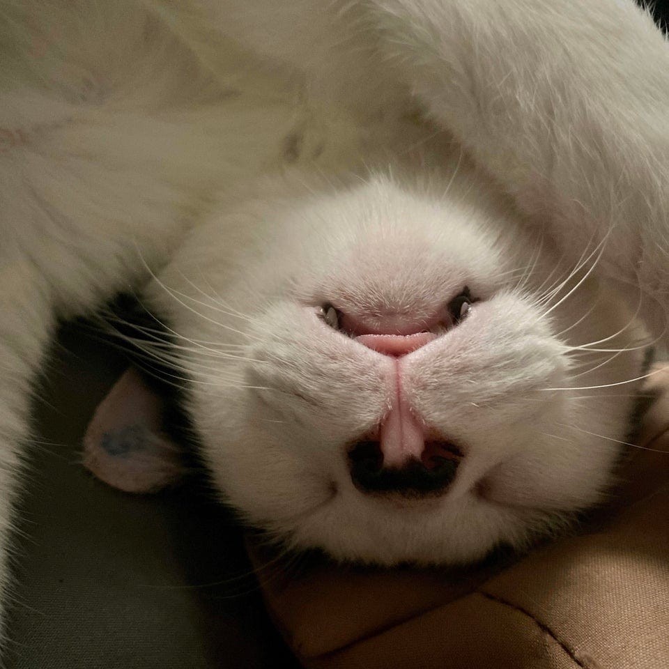 Мой кот, спящий вниз головой, выглядит как рассерженный кролик