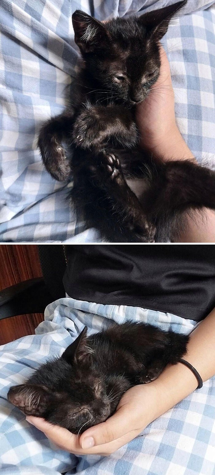 "Спасла этого котенка из мусорного бака. Знакомьтесь, Варежка!"