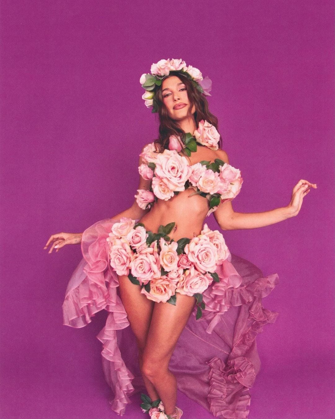 Хейли Бибер — Летиция Каста в образе цветочной феи на показе Yves Saint Laurent