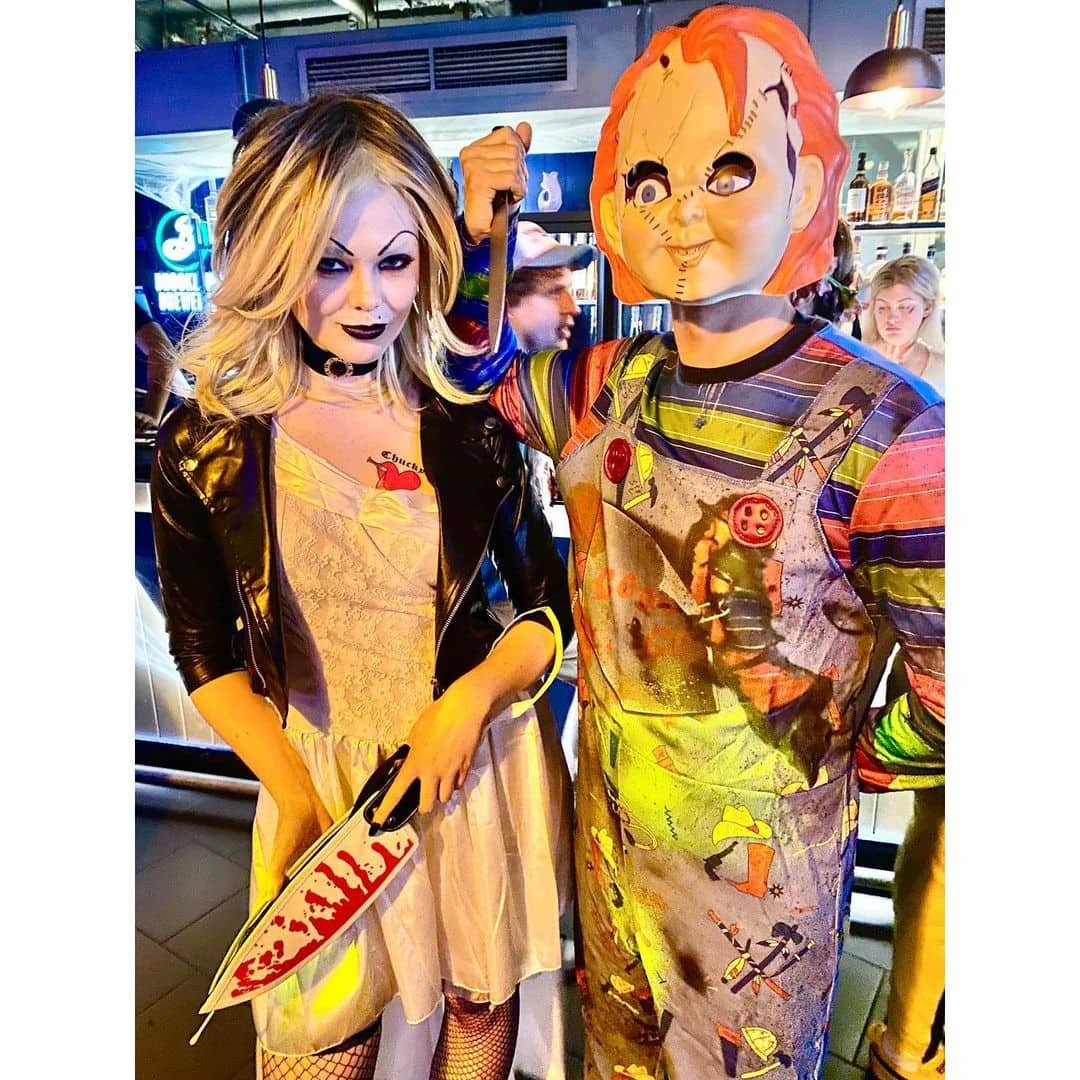 Актриса Эль Фанниг и её друг в костюмах Чаки и его невесты