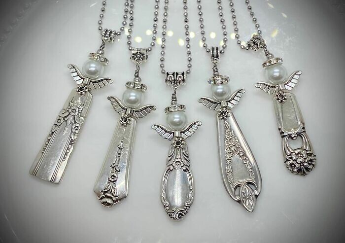 25. "Я сделала несколько ожерелий с ангелами из ручек от старинных посеребренных ложек"