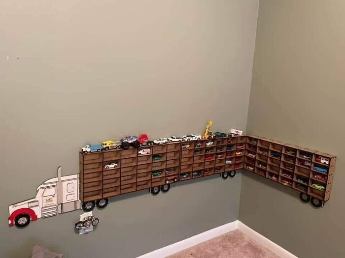 24. "Классный способ хранить коллекцию игрушечных машинок"