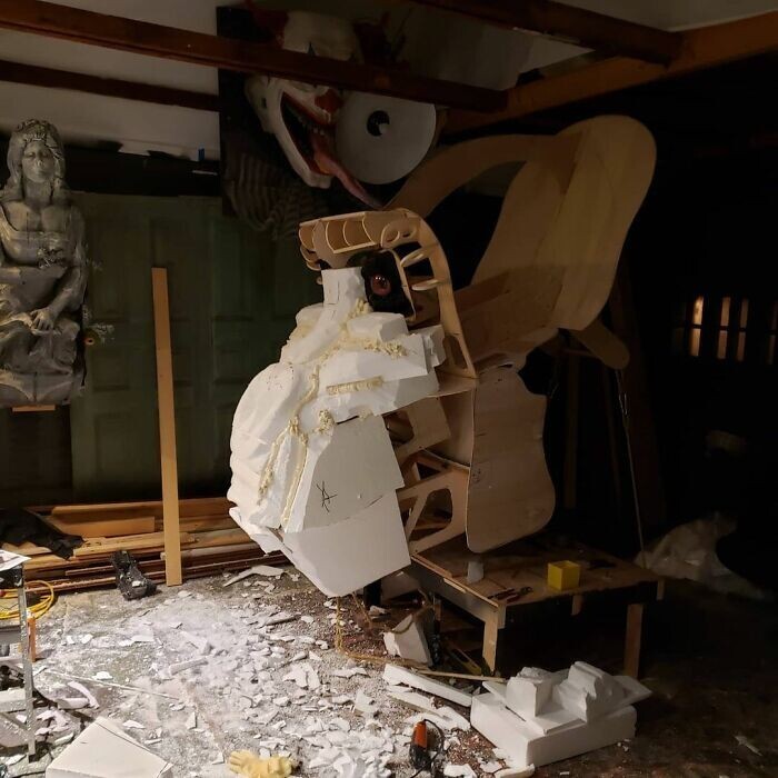 Конечно, создание таких масштабных фигур занимает немало времени, поэтому работа начинается в августе. Затем, в середине сентября, Том собирает детали воедино с помощью местной команды волонтеров.