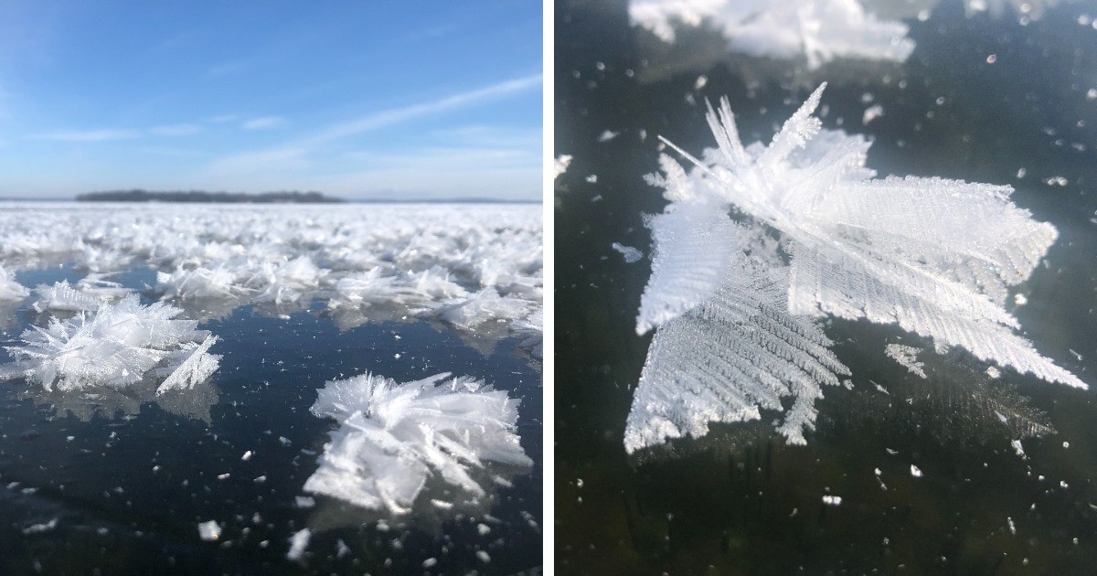 Ледяные цветы появляются на тонком слое льда при большой разнице температур. При этом должен полностью отсутствовать ветер, который способен разрушить подобную красоту в два счёта.