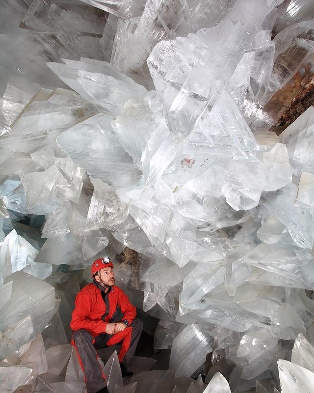 Местами здесь можно встретить кристаллы, достигающие двух метров. Хотя сама пещера небольшая по размерам — восемь метров в длину и два в высоту.
