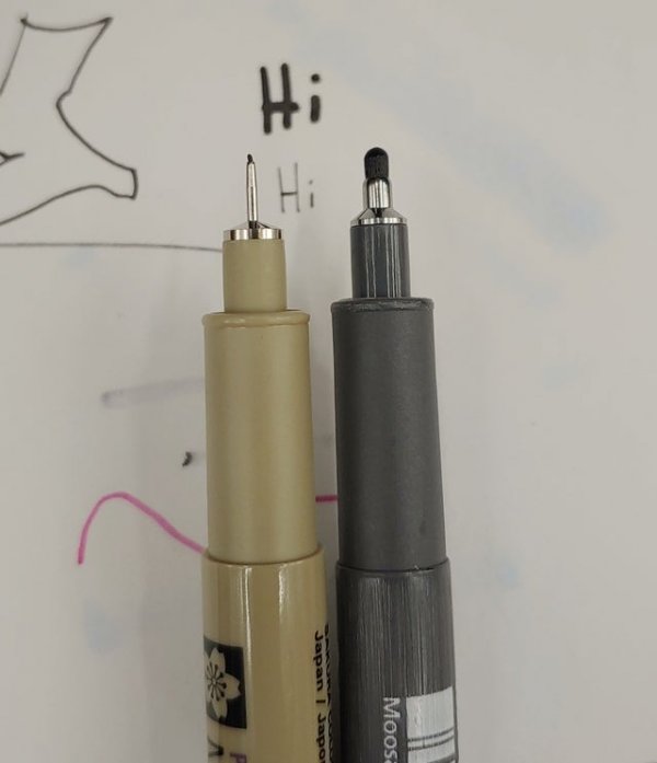 Разница между тем, как пишут стрежни 0,2 мм и 1,2 мм