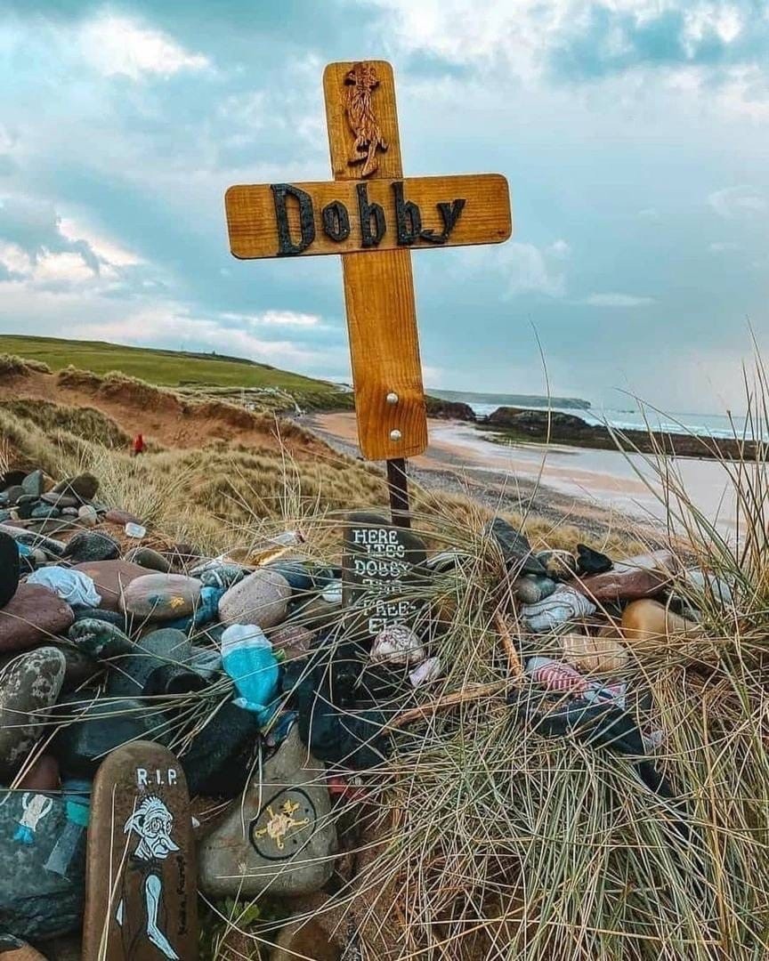 Фанаты Гарри Поттера захламили пляж в Уэльсе, на котором есть импровизированная "могила" Добби. Мемориал домовому эльфу на пляже Фрешуотер-Уэст в Уэльсе, где проводились съемки одной из частей романов «Даров смерти», появился благодаря поклонникам поттерианы. Фанаты установили крест и стали приносить к нему носки и камни, и в результате рядом с "могилой" выросла целая гора из подношений. Экологи забили тревогу.