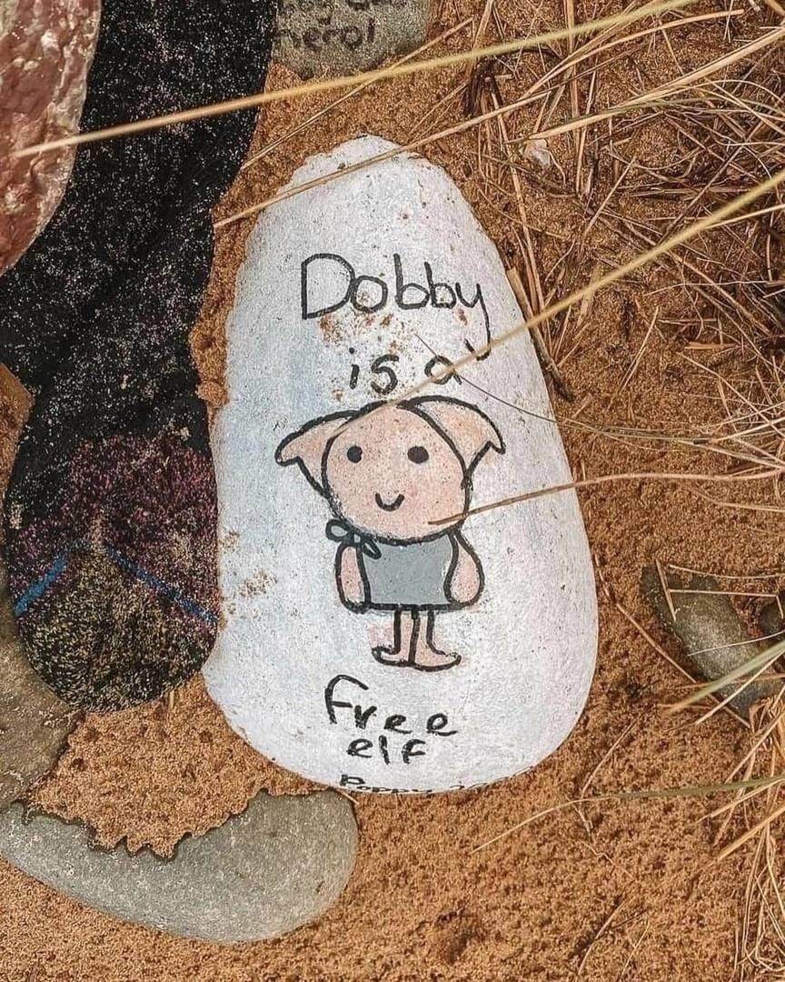 В романе Джоан Роулинг умирающий на руках главного героя - Гарри Поттера - Добби говорит ему, что «Пляж — это такое прекрасное место, чтобы посидеть с друзьями». А носки - символ освобождения Добби от рабской службы в семье магов.