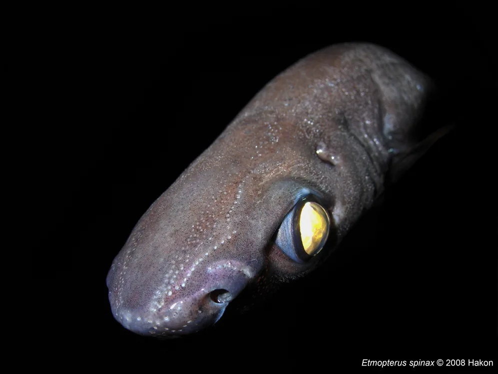 Думаете, на печени особенности акулы заканчиваются? Как бы не так! Как и большинство глубоководных существ, колючие зубастики умеют светиться в темноте. Биолюминесценция происходит за счёт специальных желёз — фотофор, расположенных на всей поверхности тела. Они служат сразу двум целям: во-первых, благодаря свечению рыбы общаются между собой.