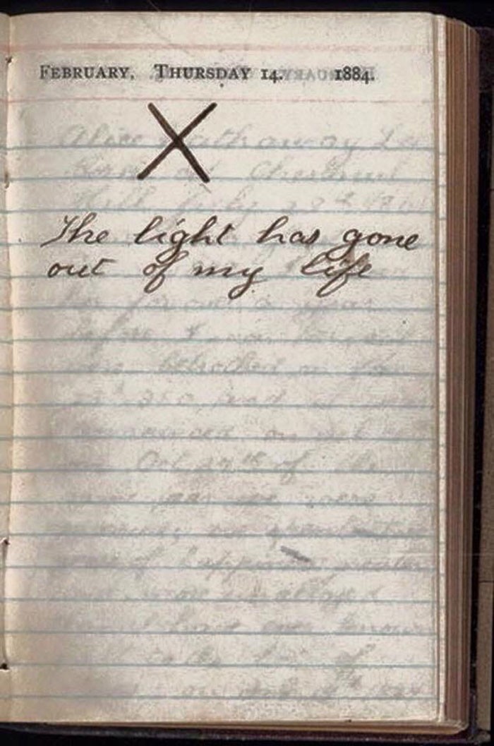 38. Единственная запись в дневнике Теодора Рузвельта в День святого Валентина 1884 года, когда его жена Элис и мать Марта скончались с разницей всего в несколько часов: "Свет моей жизни угас"