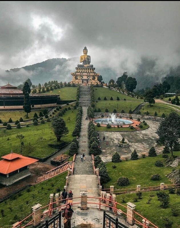 Надпись на перилах в этой беседке сделана для слепых шрифтом Брайля, она описывает какой открывается вид
