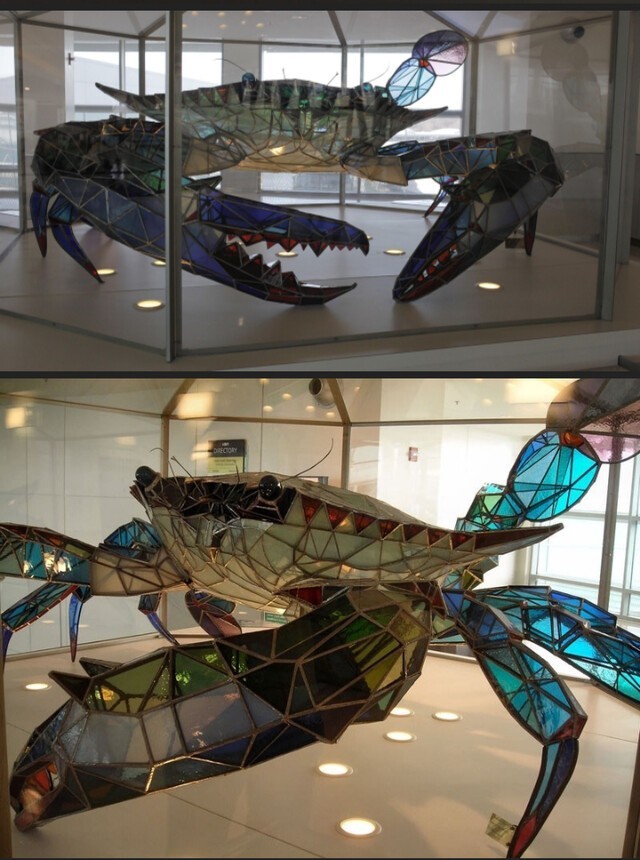 Витражная скульптура краба весом 226 кг в аэропорту Маршалла, штат Мэриленд