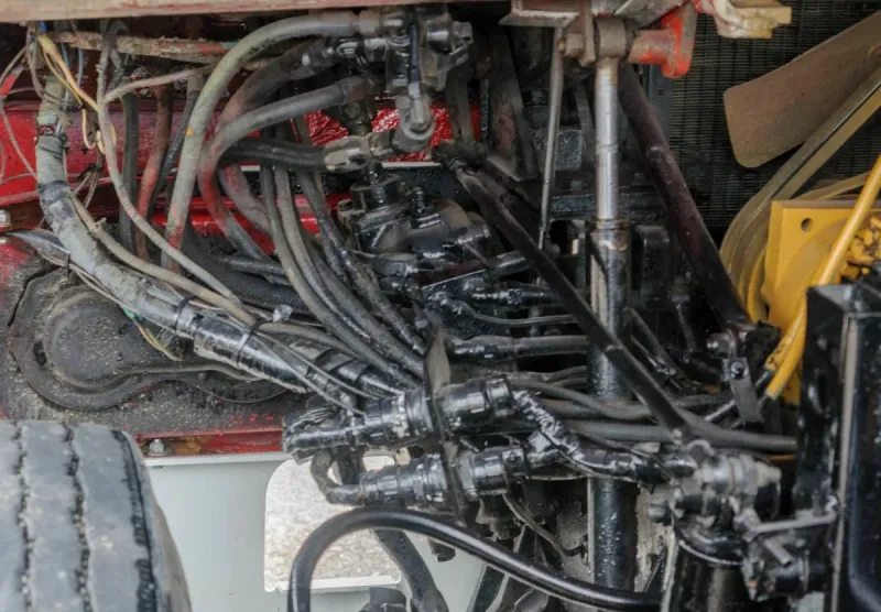 Для доступа к двигателю надо поднять кабину. Это можно сделать двумя способами – при заведенном двигателе от специального гидронасоса подъема кабины, если двигатель заглушен, то ручным рычажным приводом, по принципу домкрата. Так, а что там у нас под кабиной?