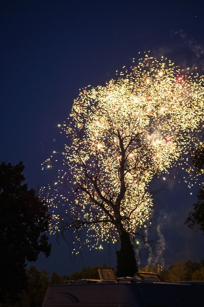 Фейерверк за старым деревом